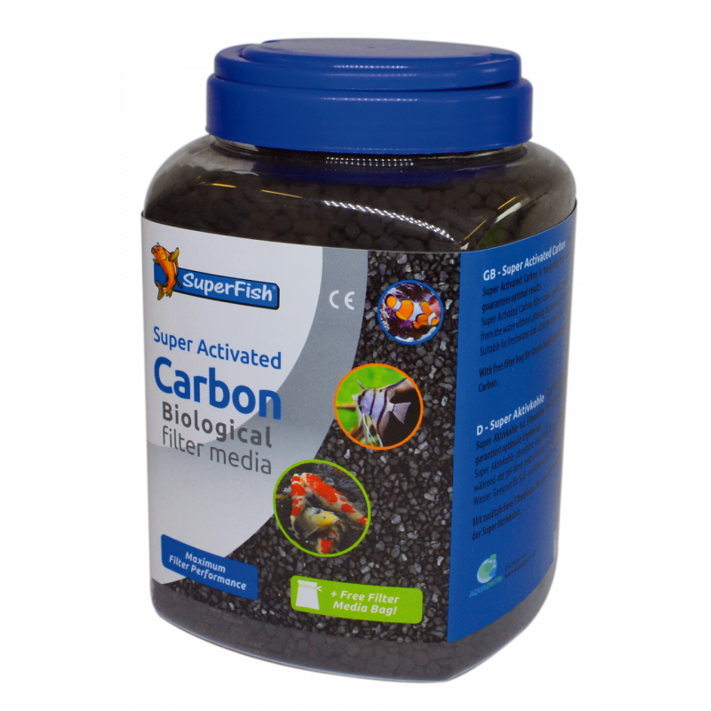 SuperFish Aktivkohle ist Filterkohle der besten Qualität, phosphatfrei, und garantiert optimale Ergebnisse. SuperFish Aktivkohle absorbiert schnell Farb- und Giftstoffe aus dem Wasser, während der pH-Wert neutral bleibt. Das Ergebnis ist glasklares und gesundes Wasser. Geeignet für Süß- und Meerwasser-Aquarien und Teiche. Mit zusätzlichem Filterbeutel für eine einfache Handhabung und Austausch der SuperFish Aktivkohle.